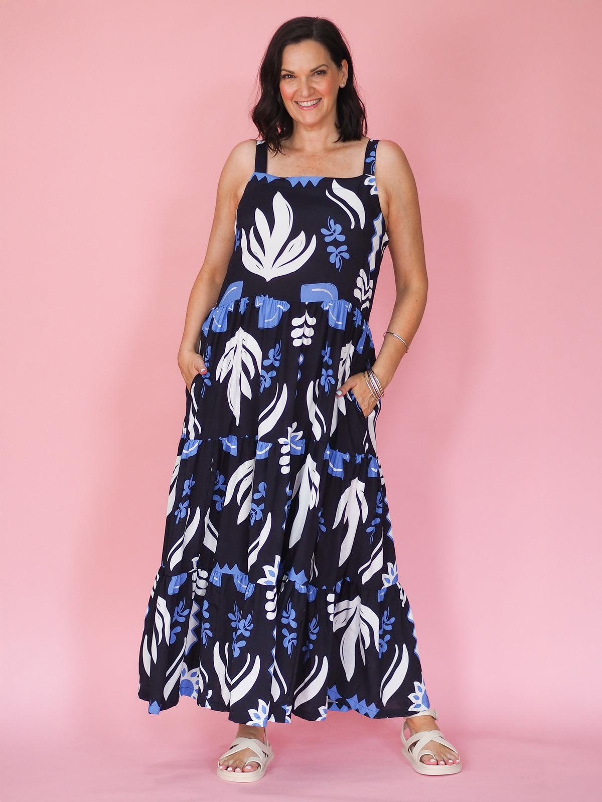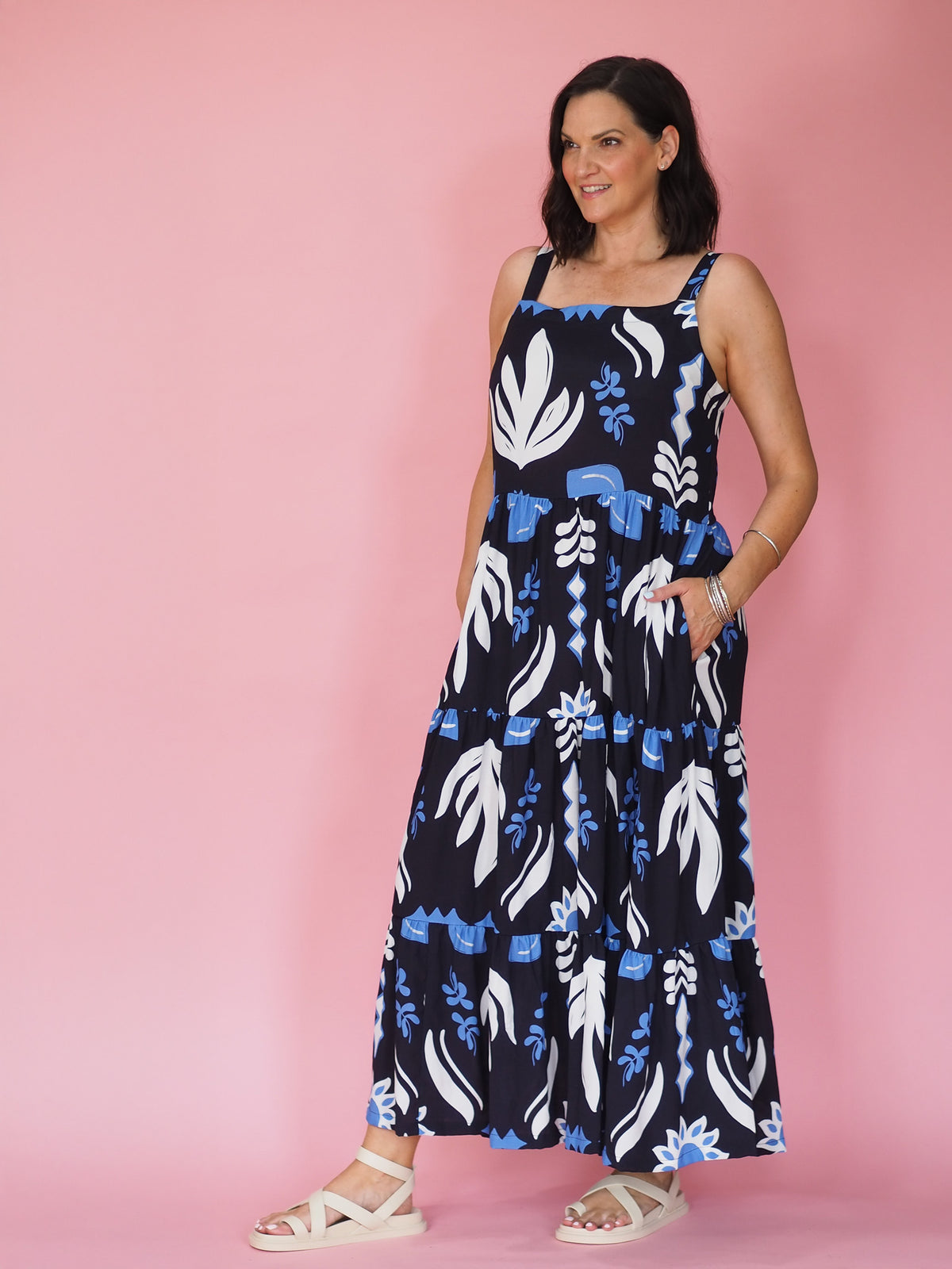 Crafted from a gorgeous viscose-blend, this dress drapes beautifully and feels amazing against your skin. The tiered design adds a touch of whimsy and movement, while the bra-friendly straps and convenient pockets make it perfect for everyday wear.